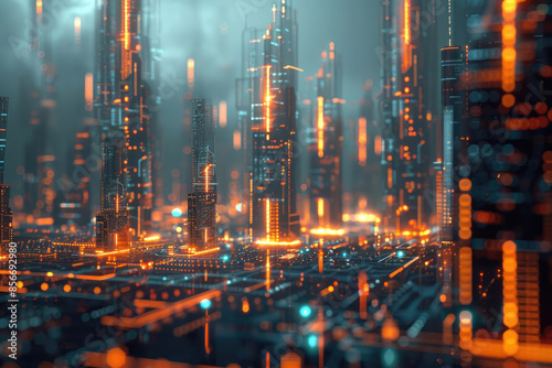 © GOLVR, Fototapeta premium Futuristic Cityscape at Night