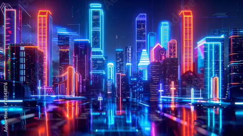Obraz premium Futuristic cityscape at night, illuminated neon lights and skyscrapers made...