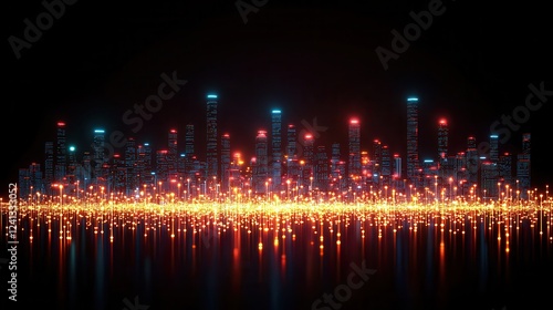 © Kanimalia, Fototapeta premium Futuristic Cityscape at Night Neon Lights and Skyscrapers Glow