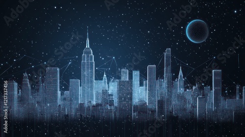 Fototapeta premium Futuristic cityscape at night with digital connections.