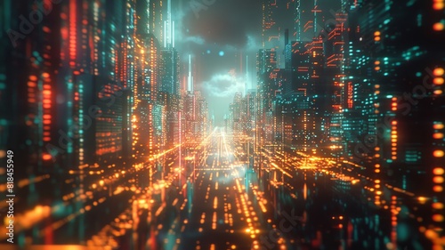 © Maina, Naklejka premium Futuristic cityscape at night with glowing neon lights
