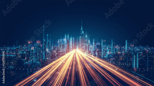 Fototapeta premium Futuristic Cityscape at Night with Illuminated Highway