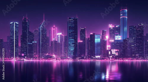 © Stanley, Fototapeta premium Futuristic Cityscape at Night with Neon Lights
