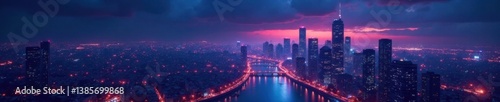 © Phennapha, Fototapeta premium Futuristic cityscape at night with sleek skyscrapers and neon lights , futuristic, evening, urban