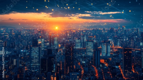 © Sandu, Fototapeta premium Futuristic Cityscape at Sunset