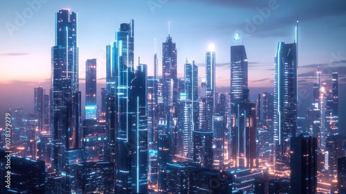 Obraz premium Futuristic Cityscape at Sunset