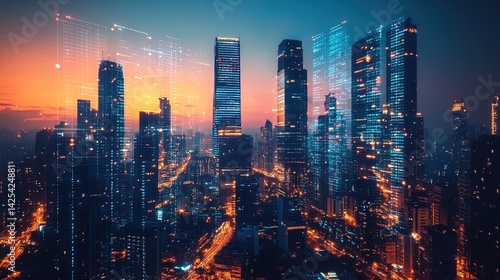 © WrongWay, Fototapeta premium Futuristic Cityscape at Sunset