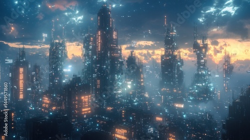 © Alief Shop, Fototapeta premium Futuristic Cityscape at Sunset