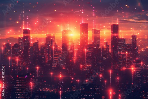 Fototapeta premium Futuristic Cityscape at Sunset.