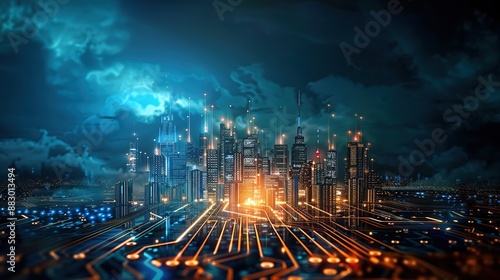 Fototapeta premium Futuristic Cityscape Connected by Digital Network