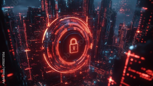 Obraz premium Futuristic Cityscape Cyber Security Data Protection Lock