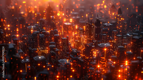 © kacadesain, Obraz premium Futuristic Cityscape 3D Render