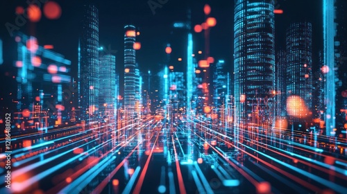 Fototapeta premium Futuristic Cityscape: Digital Metropolis at Night