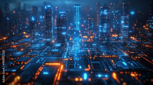 © RONNY, Obraz premium Futuristic cityscape, digital network