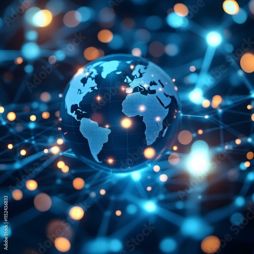 Fototapeta premium Futuristic cityscape, glowing holographic Earth