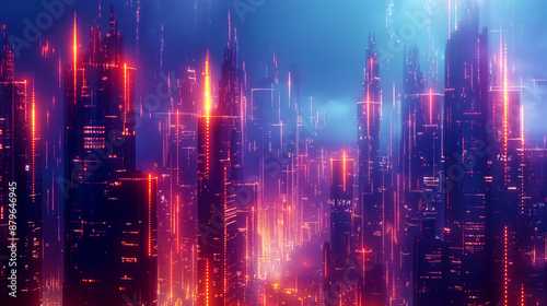 Fototapeta premium Futuristic cityscape glowing with neon lights and digital skyscrapers