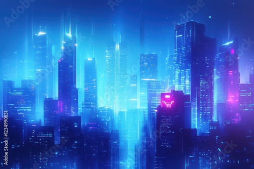 © novian, Fototapeta premium Futuristic Cityscape Illuminated By Neon Lights At Night