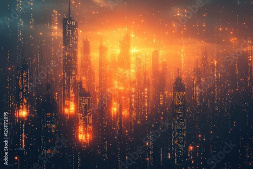 © Somboon, Obraz premium Futuristic cityscape in neon glow cyberpunk environment high fidelity visuals