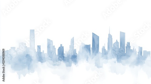 Fototapeta premium Futuristic Cityscape in Watercolor Style with Urban Silhouettes