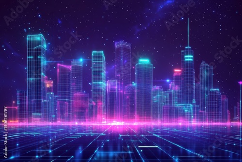 Fototapeta premium Futuristic Cityscape Neon Glow Digital Metropolis Skyline Night