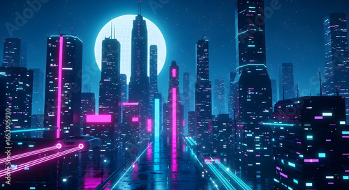 Obraz premium Futuristic cityscape neon night