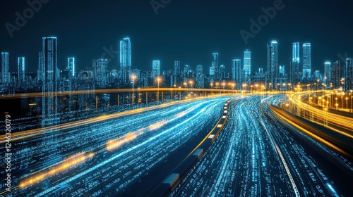 Fototapeta premium Futuristic Cityscape Night Highway Data Streams