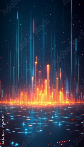 © Ilja, Obraz premium Futuristic Cityscape Of Glowing Lights, Circuit Board Background, Technology And Innovation