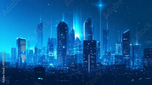 Fototapeta premium Futuristic Cityscape on Blue Background - Digital Illustration of Modern...