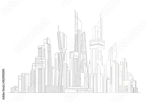 Naklejka premium Futuristic Cityscape Outline with Modern Architectural Design