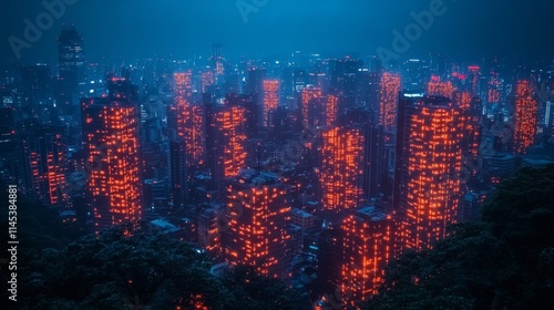 Obraz premium Futuristic Cityscape Powered by Advanced Telecommunications and Smart...