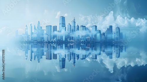 Obraz premium Futuristic Cityscape Reflected in the Clouds Above Towering Skyscrapers