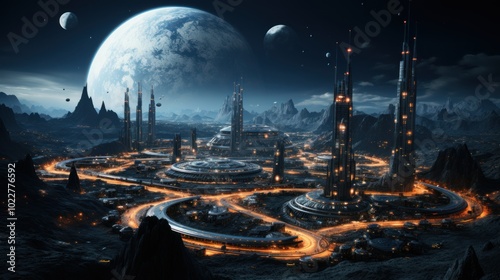 Fototapeta premium Futuristic Cityscape Under a Double Moon