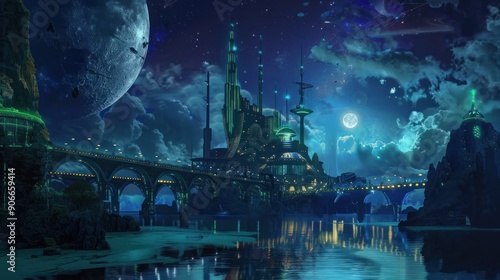 Obraz premium Futuristic Cityscape Under a Starry Sky