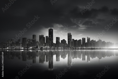 Fototapeta premium Futuristic Cityscape with Abandoned Coastline in Monochrome