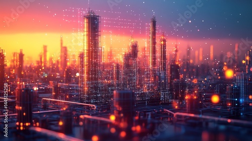 © MochSjamsul, Fototapeta premium Futuristic Cityscape with Digital Network