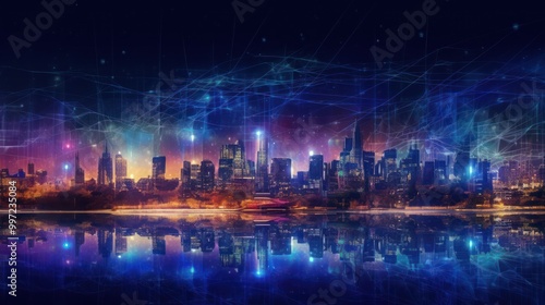 © gufron, Fototapeta premium Futuristic Cityscape with Digital Network