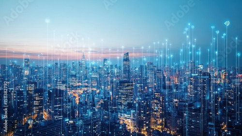© Ketua, Fototapeta premium Futuristic Cityscape with Digital Network Connections