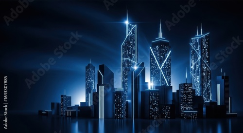 Obraz premium Futuristic Cityscape with Glowing Blue Lights and Modern Architecture