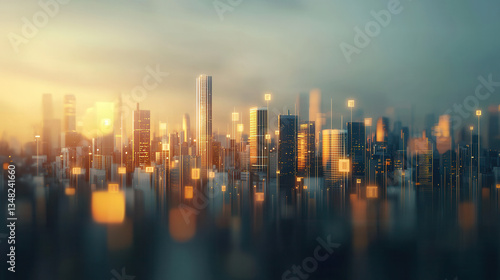 © Worakit, Fototapeta premium futuristic cityscape with glowing digital lights symbolizing innovation and economic growth