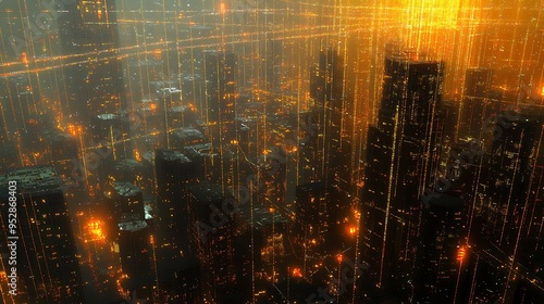Naklejka premium Futuristic Cityscape with Glowing Grid Pattern