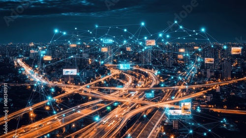 Fototapeta premium Futuristic Cityscape with Glowing Highways and Illuminated Connections