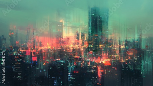 Fototapeta premium Futuristic Cityscape with Glowing Lights