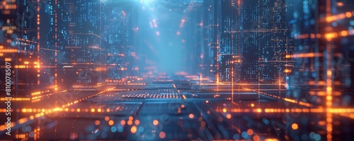 © Denys, Fototapeta premium Futuristic cityscape with glowing lights