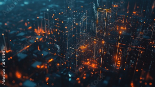 © @adha, Fototapeta premium Futuristic Cityscape with Glowing Network Connections and Modern Architecture