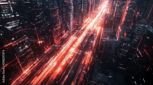 Obraz premium Futuristic Cityscape with Glowing Red Lines