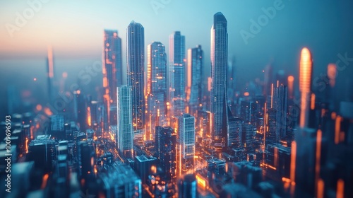 Obraz premium Futuristic cityscape with holographic skyscrapers