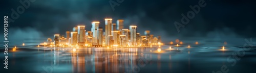 © Ndoomyim, Fototapeta premium Futuristic Cityscape with Illuminated Skyscrapers