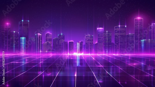 © @desy, Fototapeta premium Futuristic Cityscape with Neon Lights