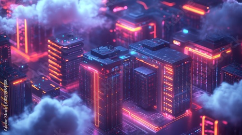 © irma, Obraz premium Futuristic Cityscape with Neon Lights
