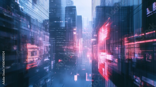 © Media Srock, Fototapeta premium Futuristic Cityscape with Neon Lights and Blurry Motion